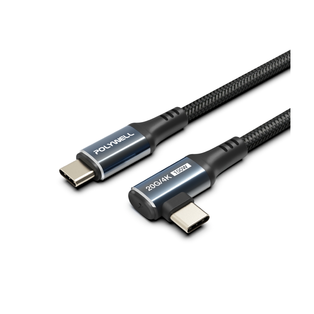 POLYWELL 寶利威爾 星光系列 C To C 100W USB3.2 高速傳輸充電線 /90度彎頭款 /1米