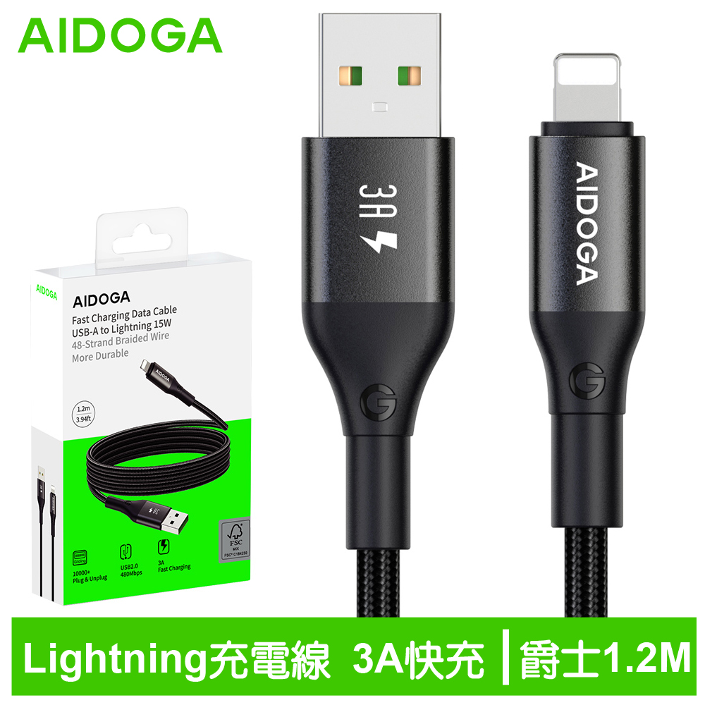 AIDOGA 艾迪伽 3A快充 Lightning/iPhone充電傳輸線 爵士系列 1.2M