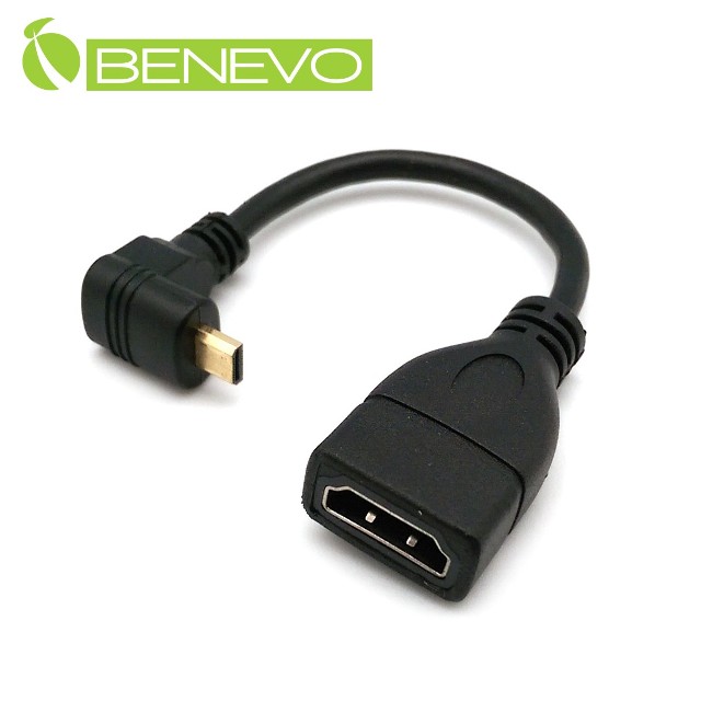 Benevo 上彎型 15cm Micro HDMI(公) 轉 HDMI(母) 轉接短線 (BHDMICROF015U)