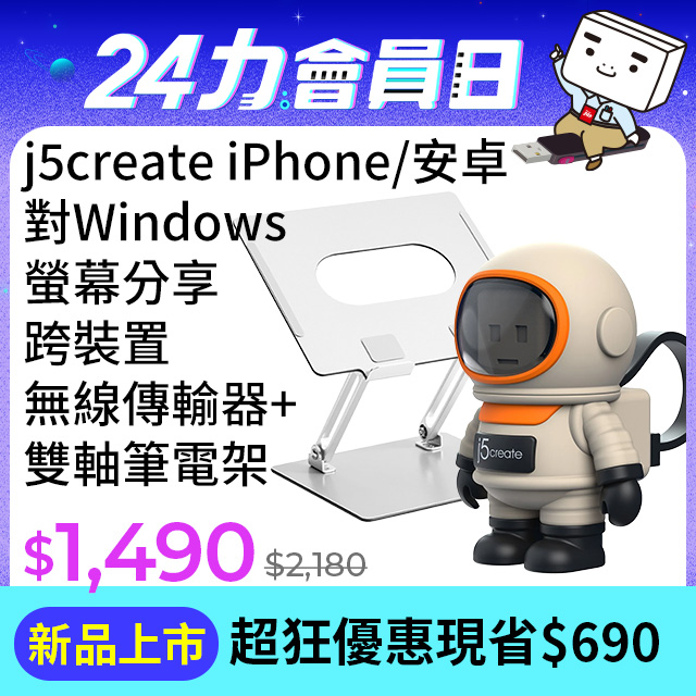 - 筆電支架:鋁合金雙軸設計,輕巧耐用不生鏽,角度無段式調節,收折高度僅35mm