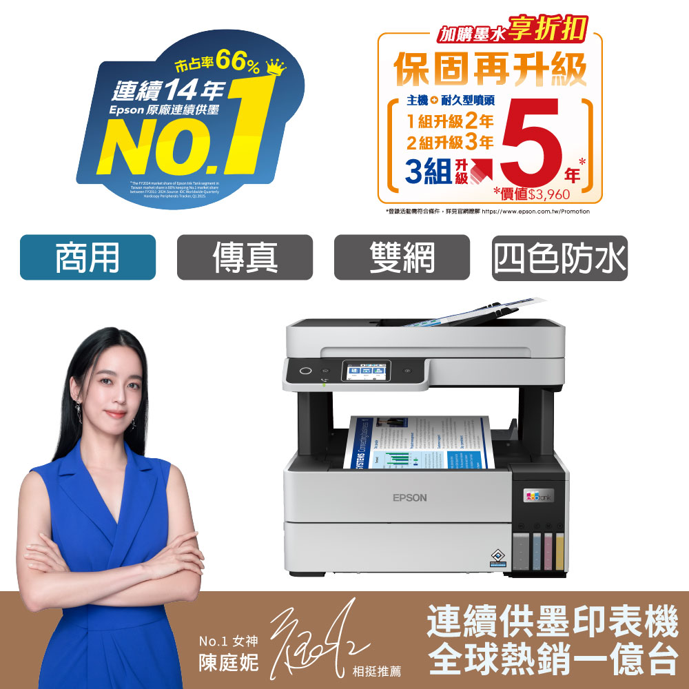 EPSON 愛普生 L6490 四色防水 高速A4連續供墨傳真複合機