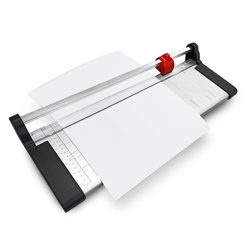 - 滾輪式裁切,使用方便 配備透明量尺,裁切更精準