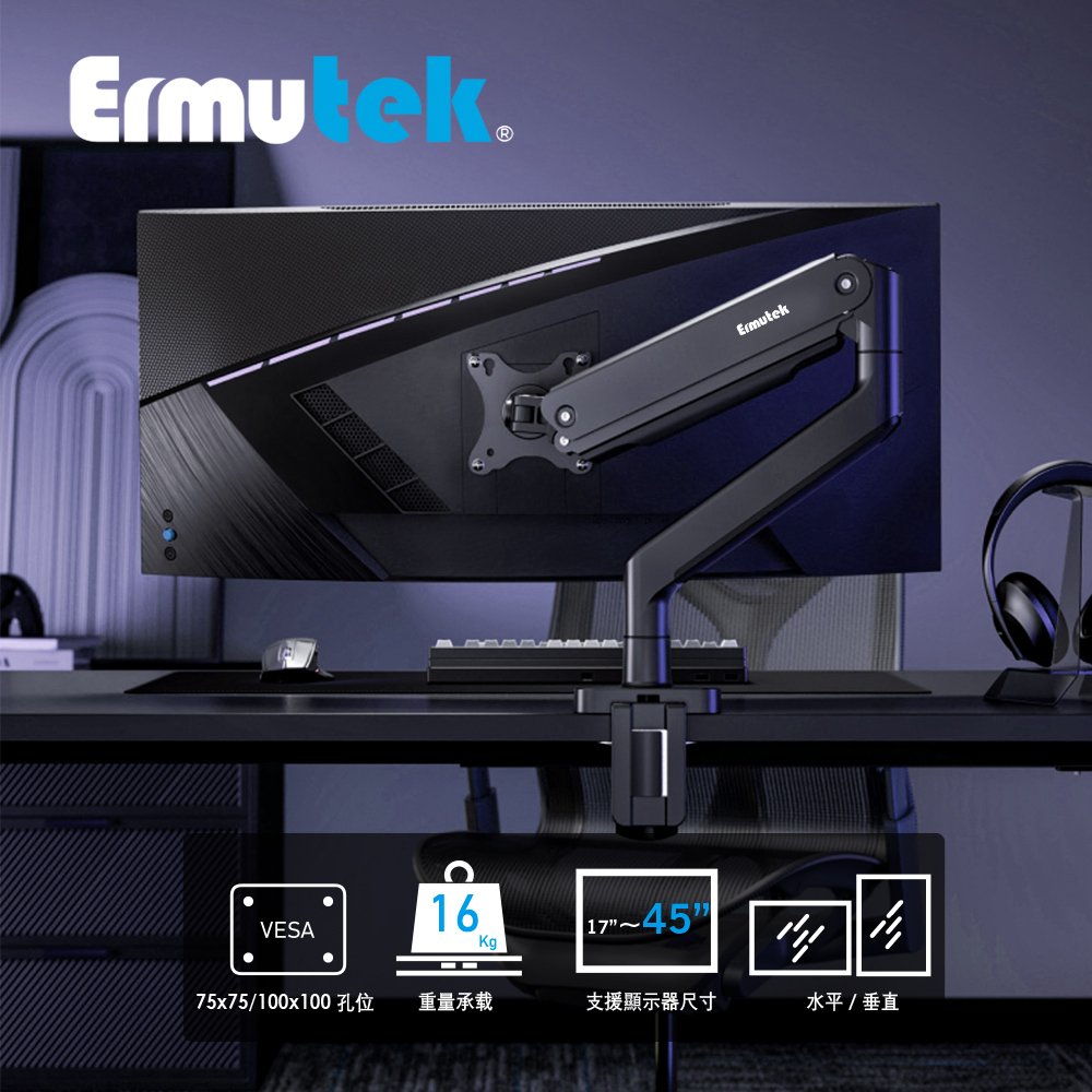 - 市場首選支援17-45, 高承重16KGS, 電競螢幕最佳選擇, 鋁合金結構穩固耐用