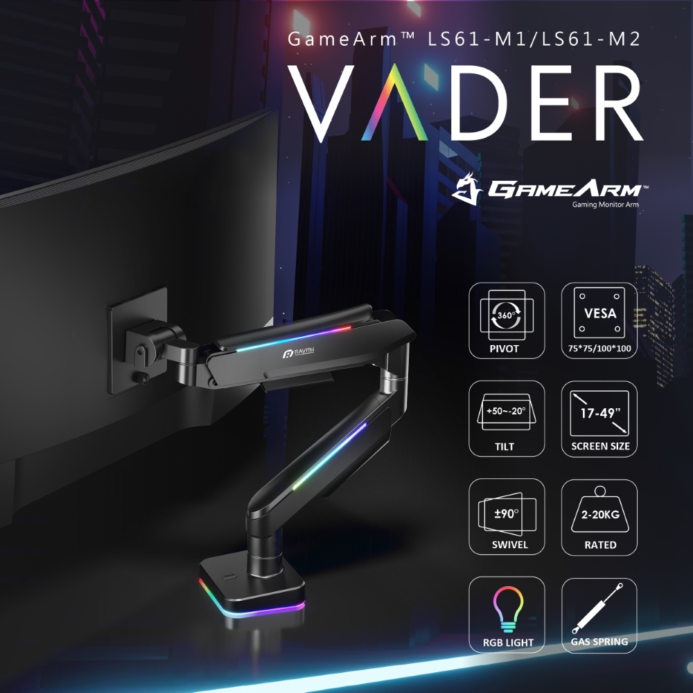 Raymii 瑞米 VADER系列 支援三星G9 49吋大曲面螢幕 20KG超高承重 發光RGB 氣壓式 鋁合金 電競螢幕支架 LS61-M1 螢幕架 螢幕增高支架