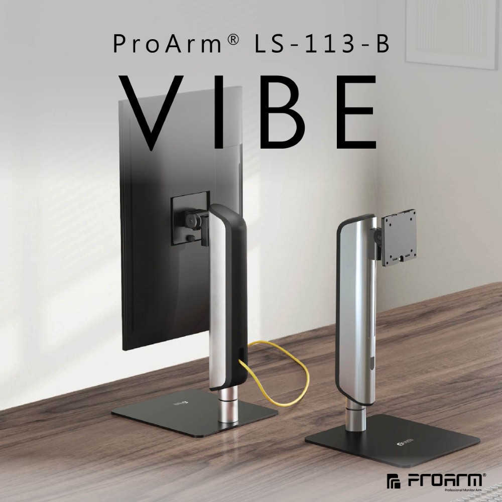 1. VIBE系列為ProArm®家族下的直立型螢幕支架,獨特的升降與外觀設計,將卓越的品質與創新的設計結合,為場域提供一種時尚且簡約大器的氛圍感