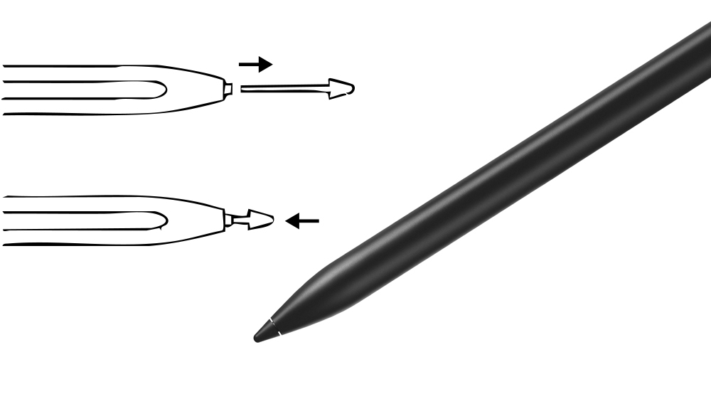 - 將新的筆尖沿著筆筒方向插入到筆筒內。平穩地推動筆尖直到它停止前進。
