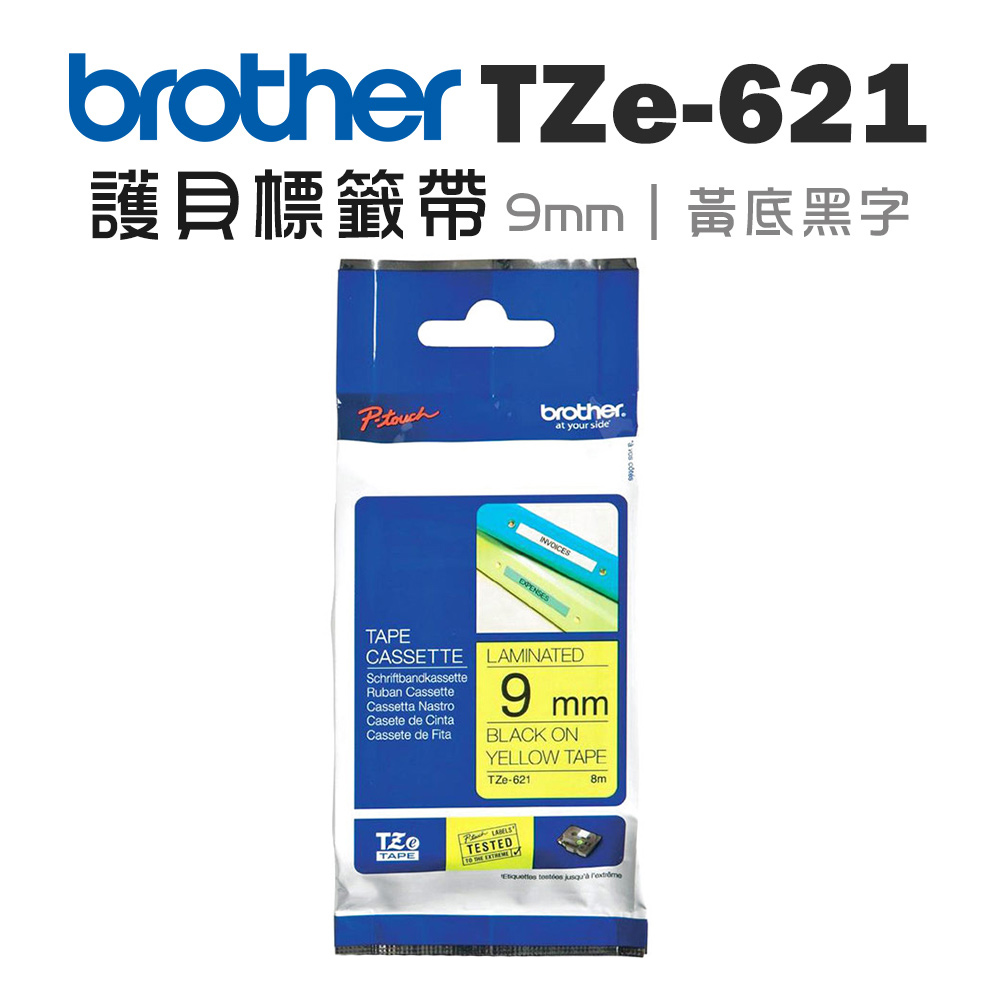 BROTHER 兄弟牌 TZe-621 護貝標籤帶 ( 9mm 黃底黑字 )