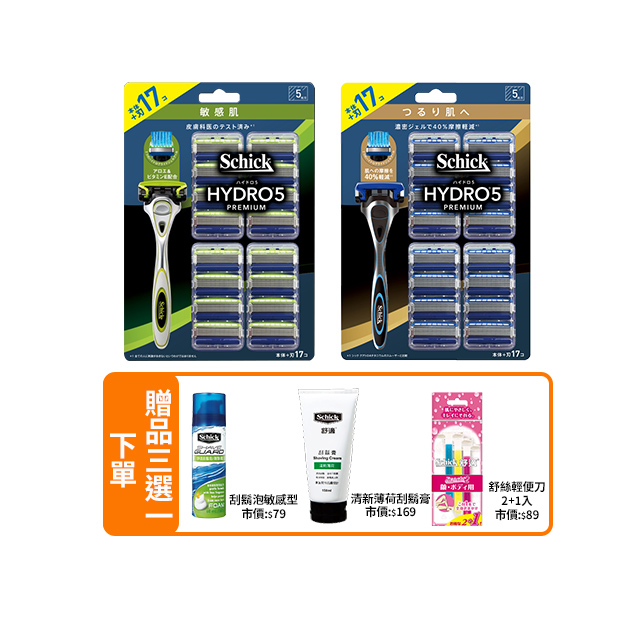 品名:【Schick 舒適牌】水次元5 Premium 刮鬍刀 痘痘敏感肌/保濕款 1刀把17刀片