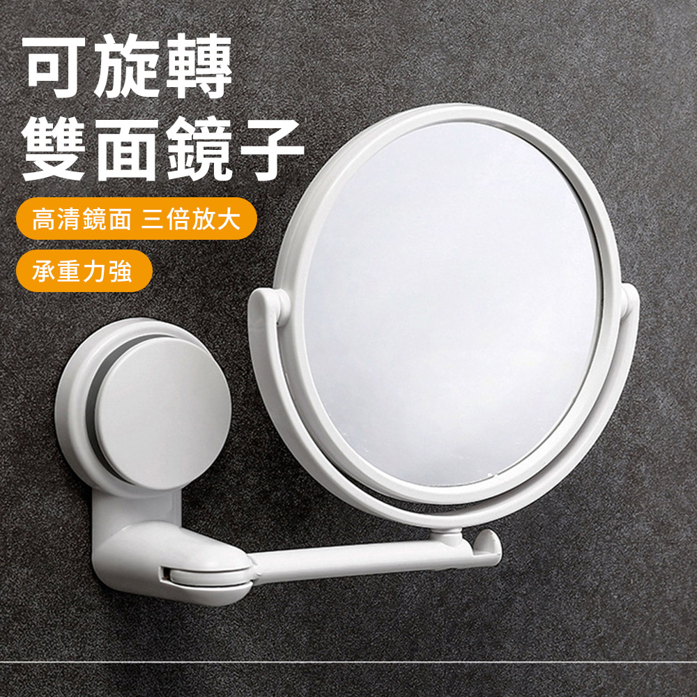QLZHS 衛生間化妝鏡 雙面放大鏡 壁掛浴室鏡 浴室美妝鏡 免打孔折疊圓鏡 梳妝鏡