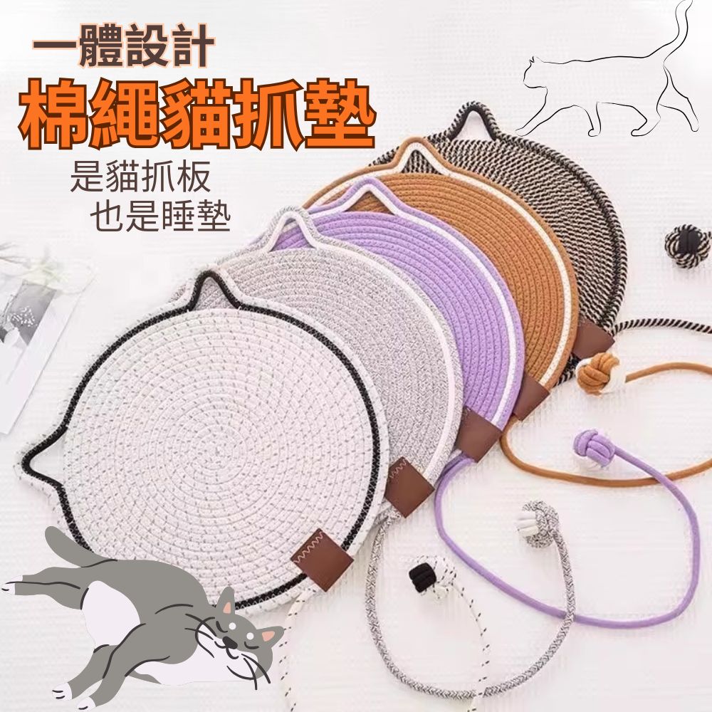 品名:四季棉麻繩貓抓墊 材質:棉麻繩 尺寸:直徑約43cm