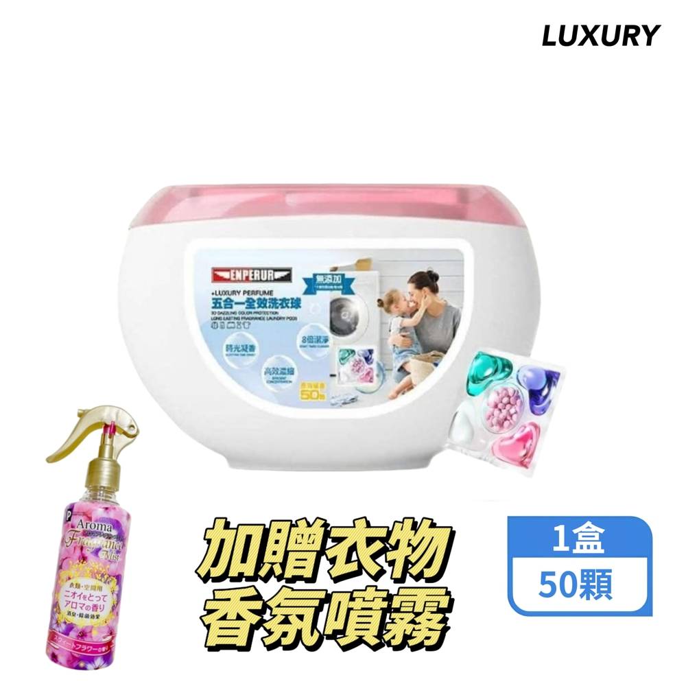 【LUXURY】五合一香氛洗衣球/洗衣膠囊 加贈衣物芳香噴霧 50顆/盒