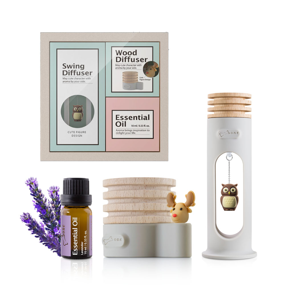 Bone 擴香禮盒三入組 - 原木麋鹿+搖搖貓頭鷹+薰衣草精油 _ 精油 擴香木 薰香 情人節 交換禮物 周年禮物