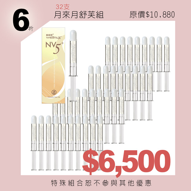 - 規格說明【品名】:舒芙菁華凝膠 【用途】:女性安瓶 【規格】:2ml/乙支 【主成份說明】 高濃度NV5+(Yogurt Filtrate)-WellnuX獨家整合配方 緊緻膨潤抗老深層保濕:三胜肽、四胜肽 換醒修護根源:金縷梅萃取、銀杏萃取 提升養護效能:菸鹼酸、維生素B5 兩種益生質:使用食物來源之小分子耐酸的益生質與天然乳酸菌萃取而成。 【使用時機】 可隨時使用於親密行為、生理期結束、平日深層保養。 【適用對象】 任何18歲以上女性、產後婦女,或欲保養私密肌膚狀態之女性。 【使用方法】 使用時,建議平躺靜置30分鐘,讓凝膠真正呵護妳的私密肌膚。 【保存方法】 尚未開封請放置於陰涼乾燥處,避免陽光直接照射 【注意事項】 - 需於清潔身體後使用,經拆封單包裝請當次使用完畢 - 經期間,孕婦及對本產品有任何疑慮者請勿使用本商品 - 特殊體質者,請詢問後醫師指示再使用 - 基於個人安全衛生考量,本產品使用一次性包材,避免重複使用造成感染之風險 ※ 基於衛生、並避免產品效能降低,開封後請連續四日使用完畢。 ※ 給予八日週期循環,讓私密機制恢復健康平衡。 ※ WellnuX維妮舒系列產品採妝品成分製成。 ※ 本商品為私人清潔性產品,一經拆封使用,恕無法退換(新品瑕疵除外)。 ※ 需避開生理期間使用。 ※ 使用後若有不適或敏感現象,請務必停止使用並向皮膚科醫師詢問。 ※ 使用前請先做小部位肌膚測試,確定無過敏反應再使用。 ※本產品內有添加植物萃取,若有細微懸浮物屬正常現象,請放心使用