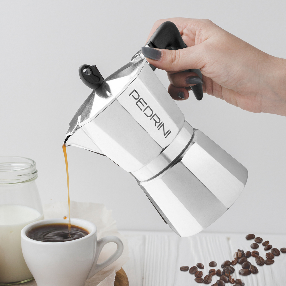 PEDRINI 義大利 Kaffettiera義式摩卡壺(黑銀6杯) / 濃縮咖啡 摩卡咖啡壺