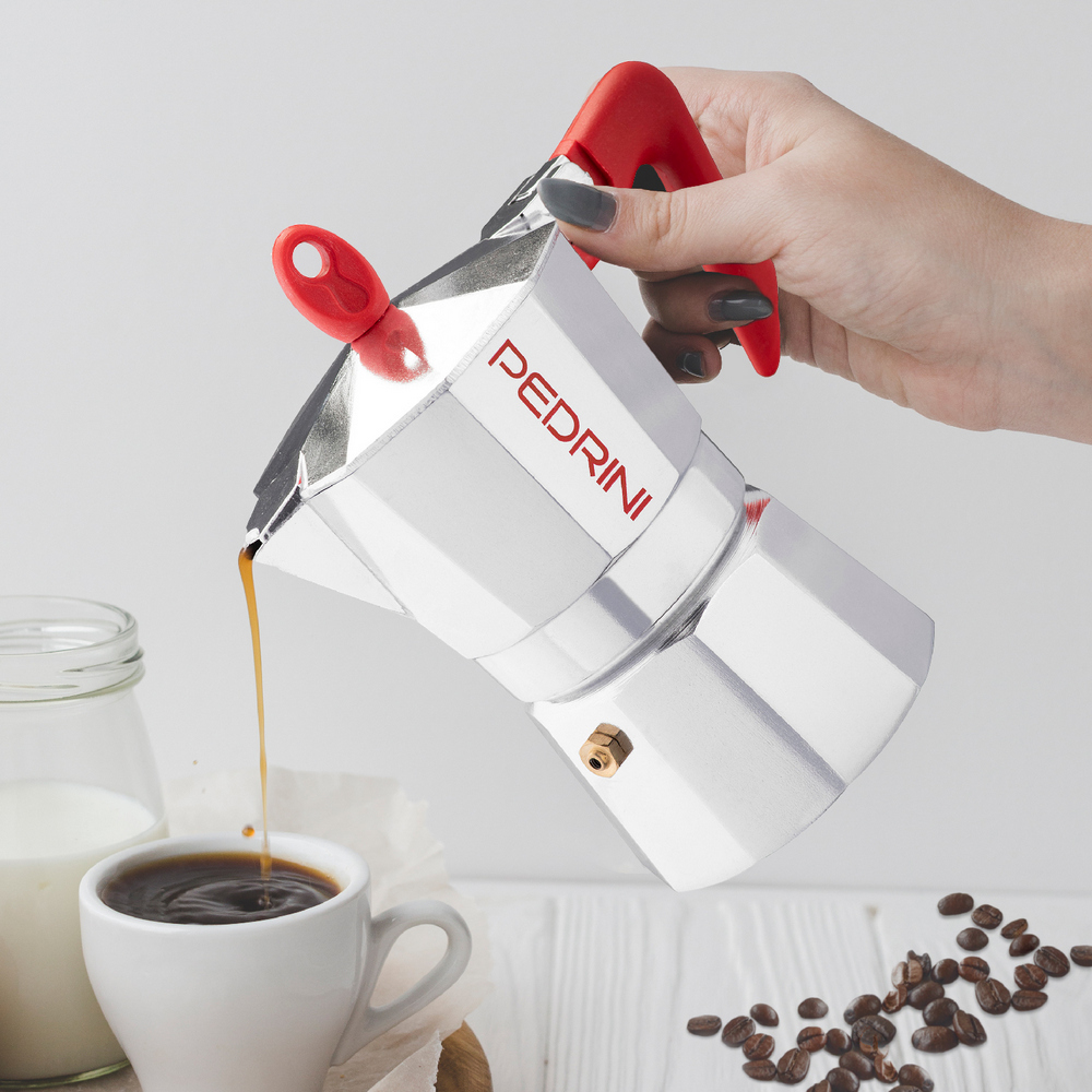 PEDRINI 義大利 Kaffettiera義式摩卡壺(紅銀4杯) / 濃縮咖啡 摩卡咖啡壺