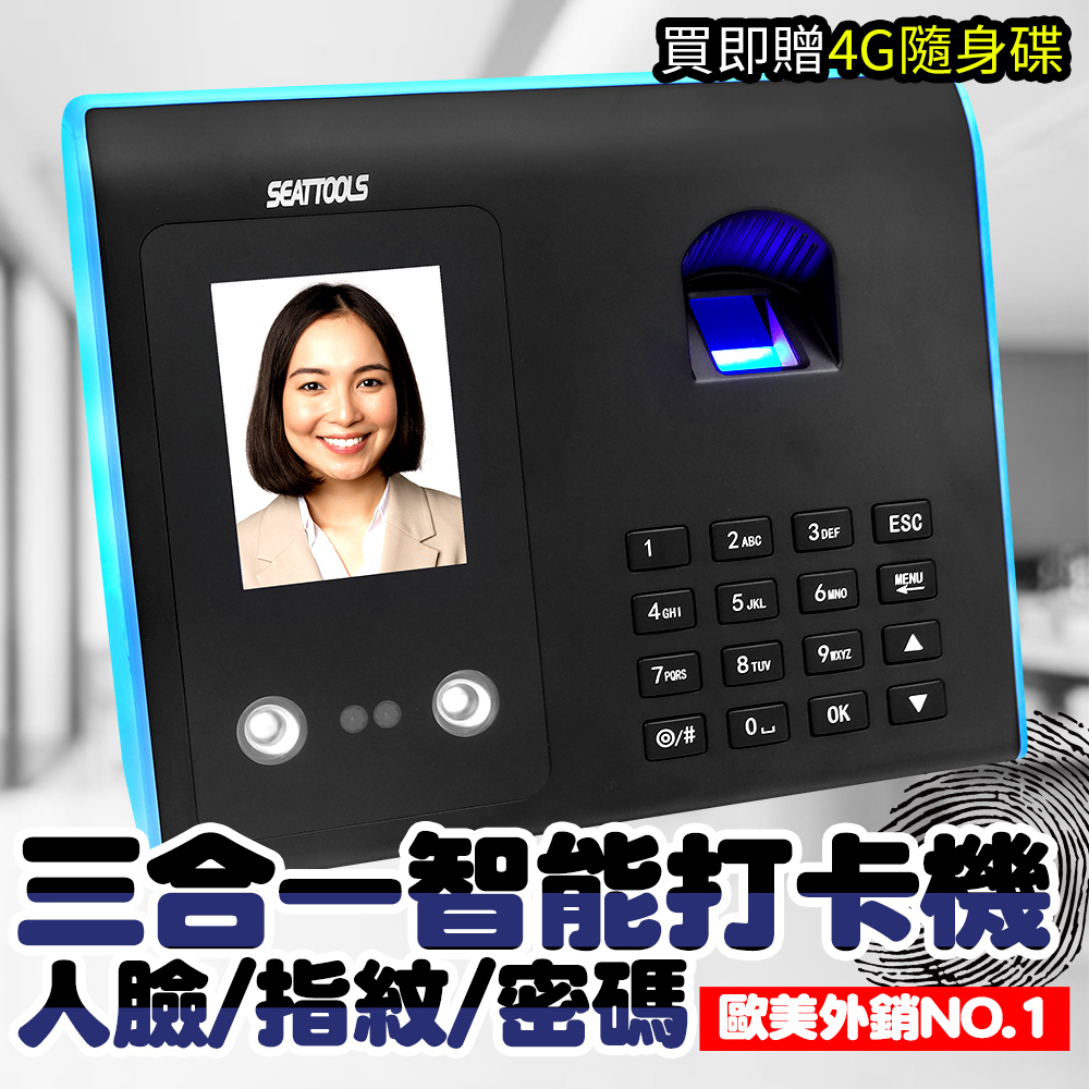 人氣推薦 三合一指紋/密碼/人臉辨識智能打卡機 打卡鐘 考勤機 打卡機 繁體中文版 快速上手 B-FPCM7005