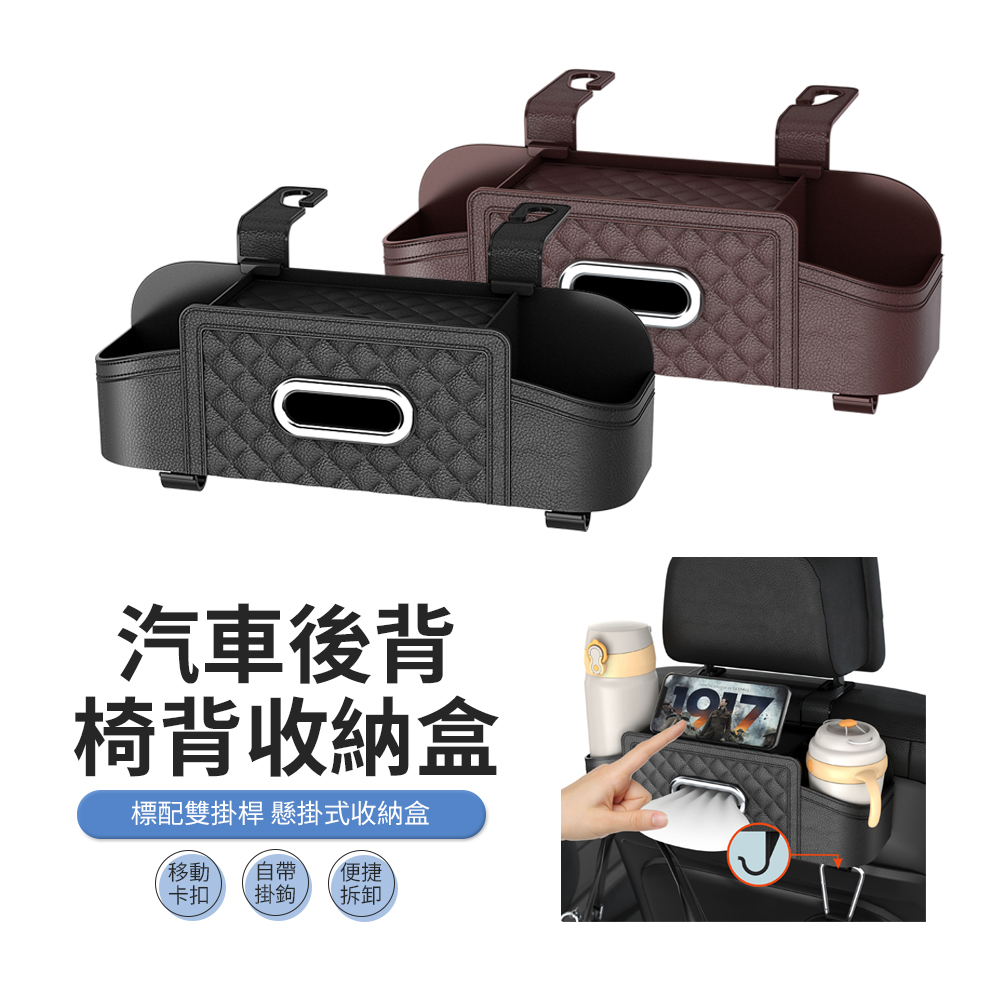 汽車座椅後背收納盒 車用多功能椅背掛鉤置物盒 水杯架紙巾盒 車載儲物盒 整理盒