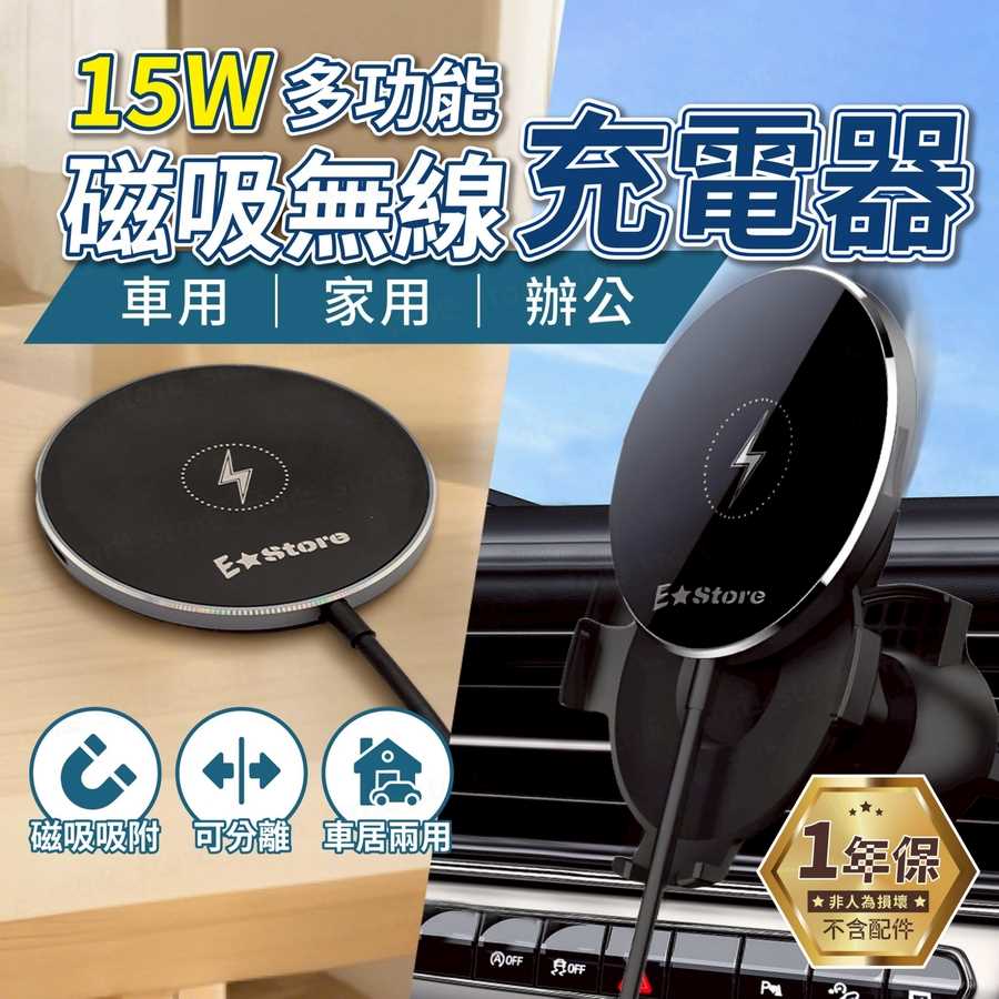 多功能 15W磁吸無線充電器 支援Magsafe磁吸定位 車用手機架 充電盤 無線充電 磁吸支架