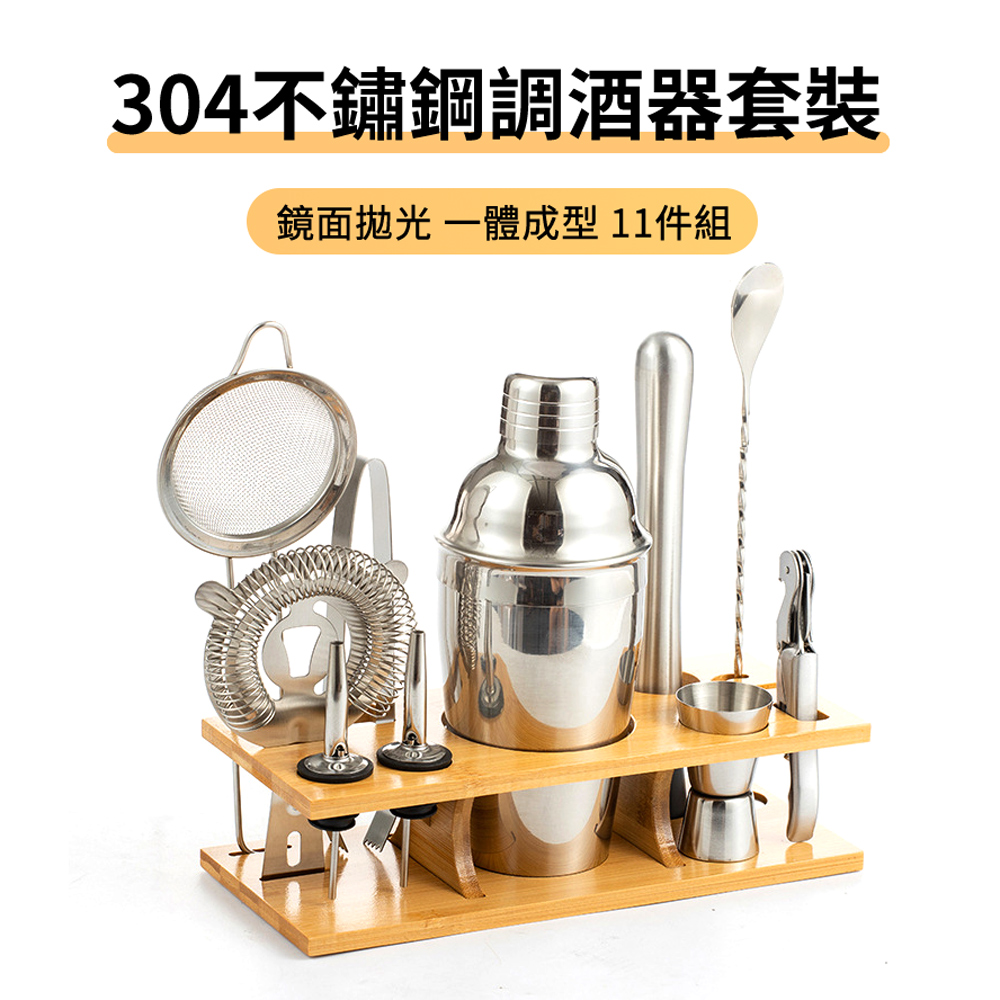 HADER 304不鏽鋼調酒器套裝11件組 酒吧全套酒具套組 調酒雪克壺 750ML