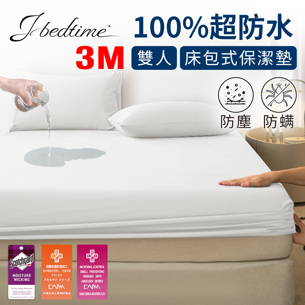 J-bedtime 床寢時光 專利吸濕排汗防水透氣網眼布雙人保潔墊(升級使用3M技術製成)-時尚白