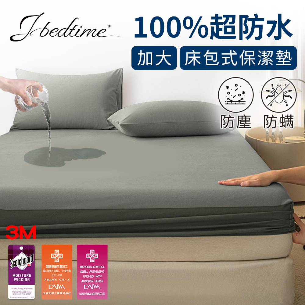 J-bedtime 床寢時光 專利吸濕排汗防水透氣網眼布加大保潔墊(升級使用3M技術製成)-時尚全灰