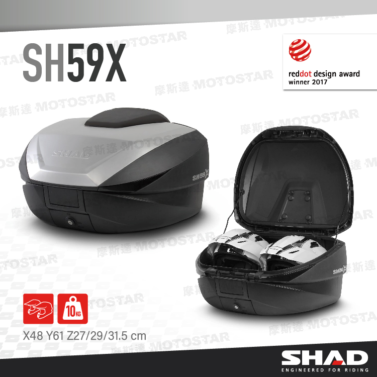 • 最大可容納兩頂越野全罩式安全帽和一組雨衣+手套配件。