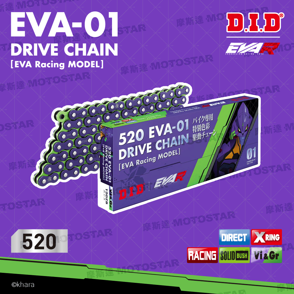 - 鏈條附有全新設計的D.I.D × EVA Racing合作限量貼紙
