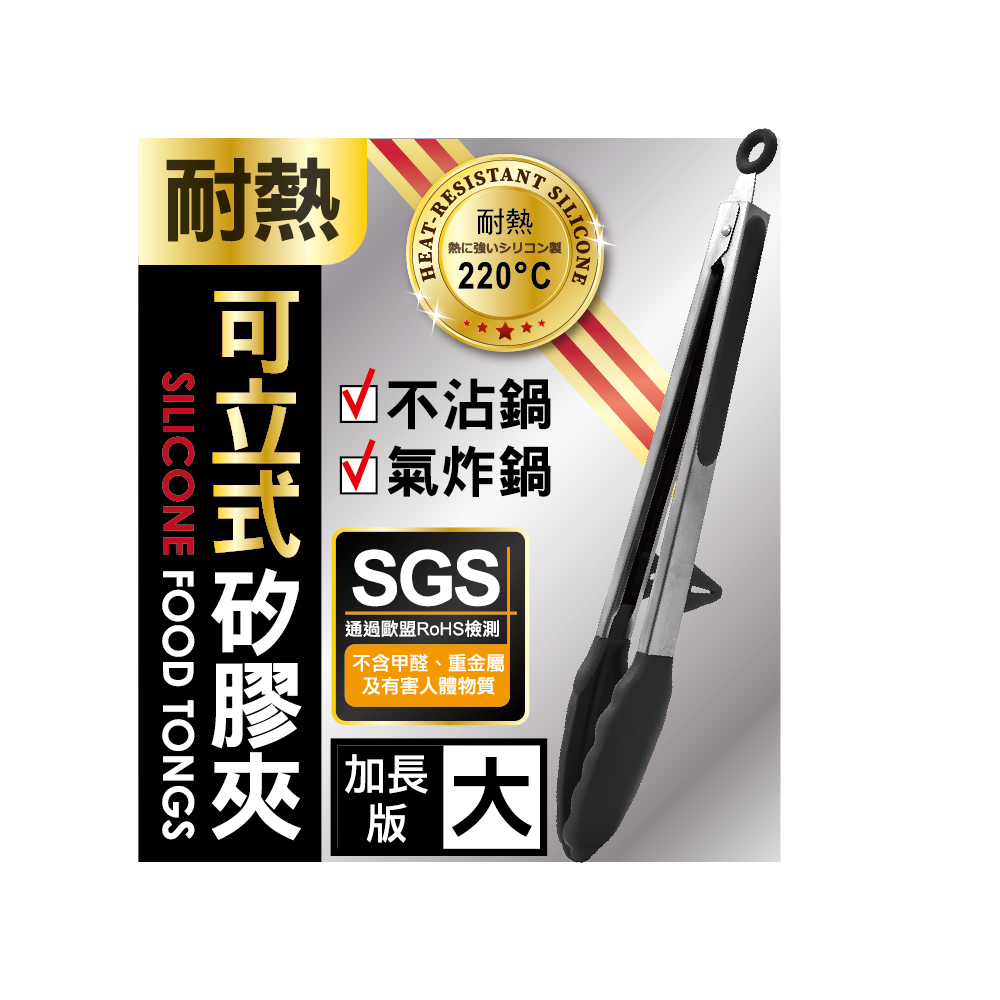 MINONO 米諾諾 不沾鍋可立式矽膠夾 加長版 大 (歐盟食品級矽膠RoHS檢測合格 料理夾 矽膠夾 燒烤夾 烤肉夾 燒肉夾)