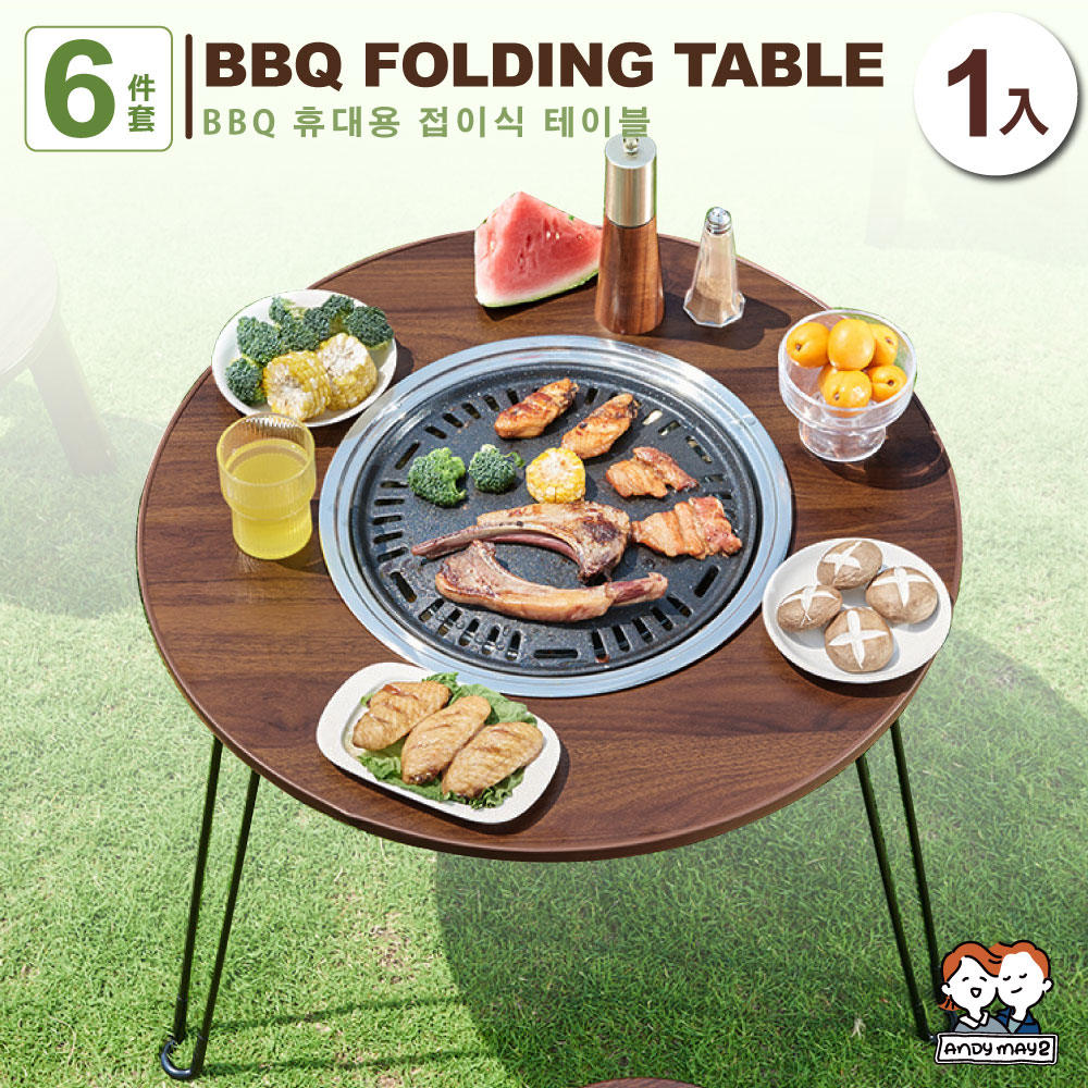 ANDYMAY2 艾烤可攜帶折疊燒烤桌_6件組 桌子+烤網+烤盤+炭盆+起網器+收納袋(烤肉神器/野餐桌/圓桌)