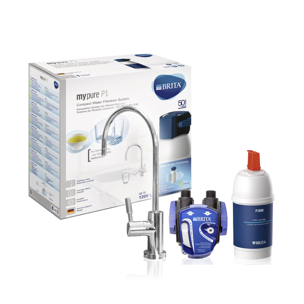BRITA 官方直營 mypure P1硬水軟化櫥下型濾水系統+P1000濾芯_內含2芯(國家標準可生飲)