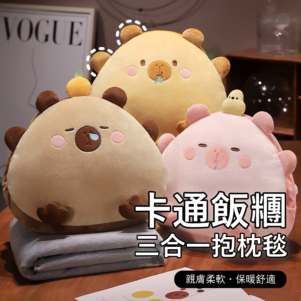卡通飯糰三合一抱枕 午睡趴枕 冬季暖手抱枕 午睡毯 辦公座椅靠枕 空調毯