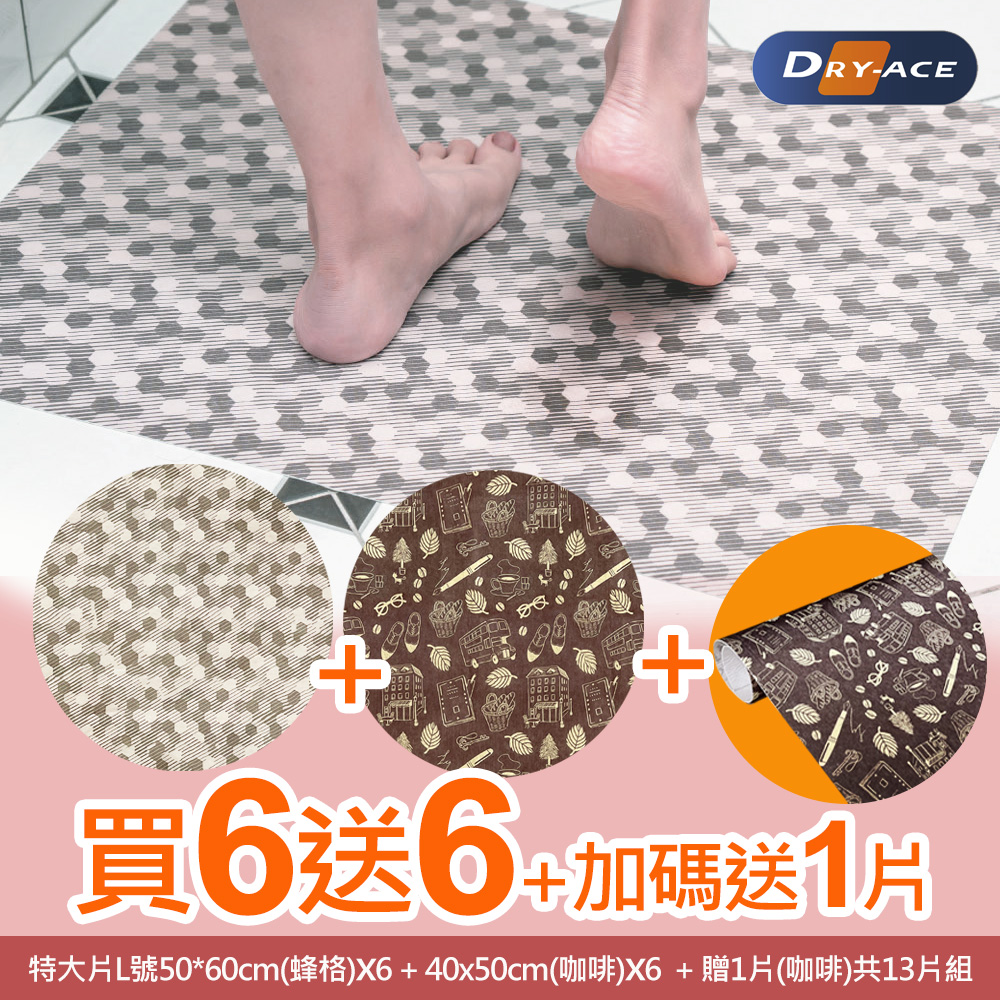 【13片熱銷組】超薄吸水防油滑止滑自黏 免洗地墊 瞬間吸收 Dry-Ace保時潔