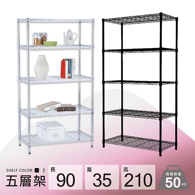 【商品名稱】90X35X210H五層架(電鍍色/黑色)