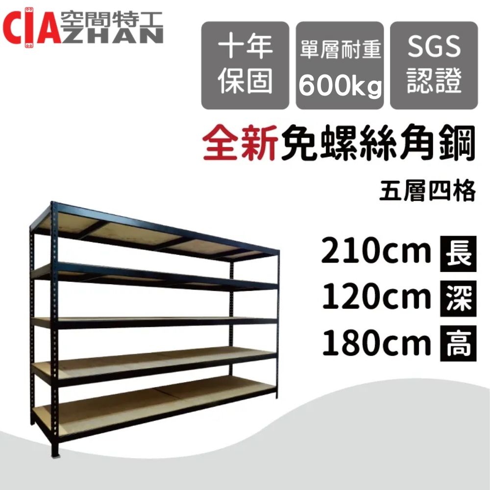 空間特工 黑色免螺絲角鋼架【台灣製】210x120x180cm 五層架 貨架 物料架 倉庫架 工具架 置物架 層架 置物架
