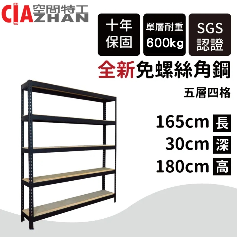 黑色免螺絲角鋼/165x30x180cm/收納架/陳列架/電器層櫃/置物櫃/收納櫃 耐重層架 展示陳列架 廚房收納