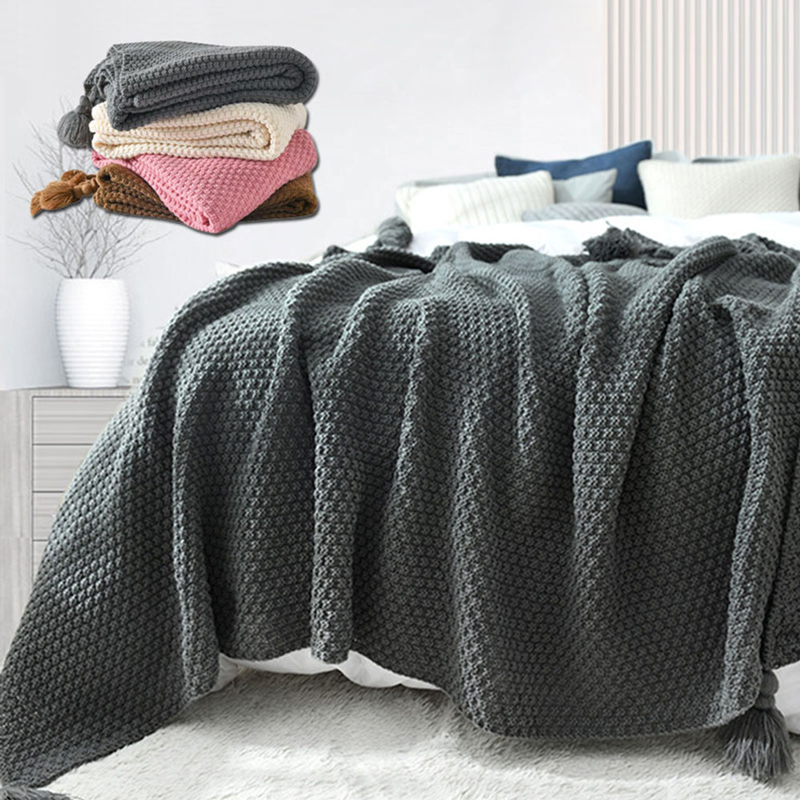 北歐風流蘇針織蓋毯 雙人毯150x200cm 針織毯/空調毯/四季毯/床尾毯/ins風