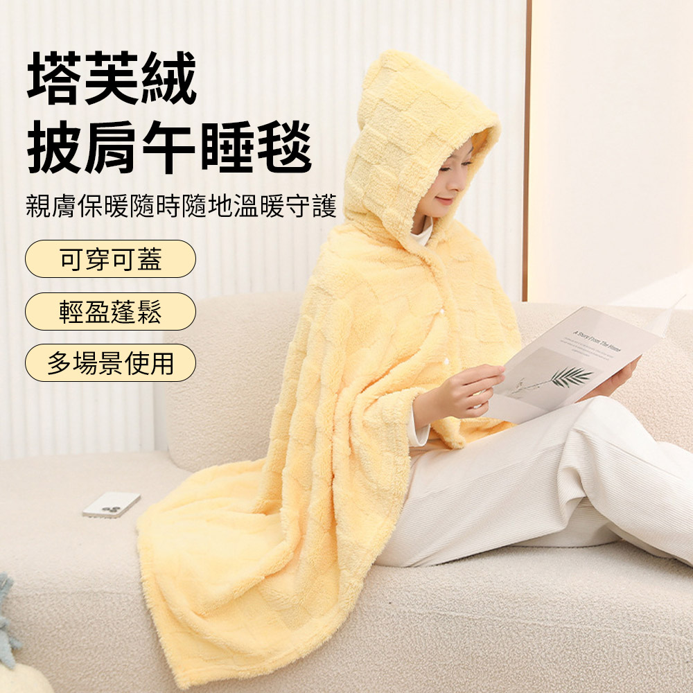 Chewy 質感暖色系雕花塔芙絨披肩按扣毛毯 素色保暖多功能午睡毯 85*140CM (懶人毯 披肩斗篷 沙發毯)