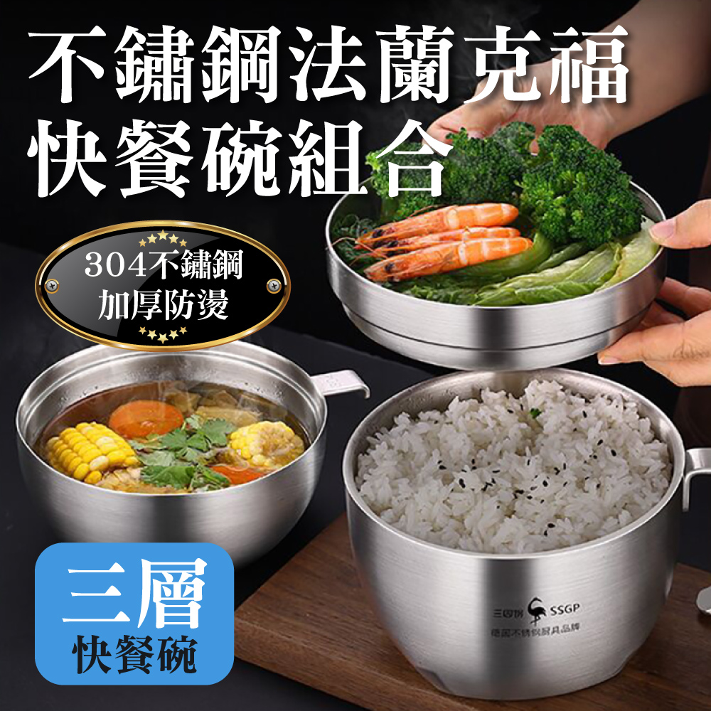 商品名稱:【新錸家居】法蘭克福304不鏽鋼泡麵碗飯湯碗便當盒-三層款