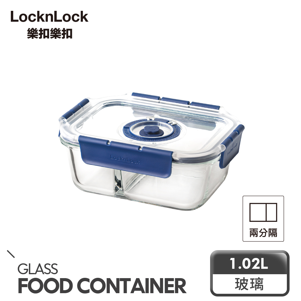 LocknLock 樂扣樂扣 頂級透明玻璃真空保鮮盒/長方形分隔/1.02L (1A01-LBG447CVAC) (不含真空抽氣棒)
