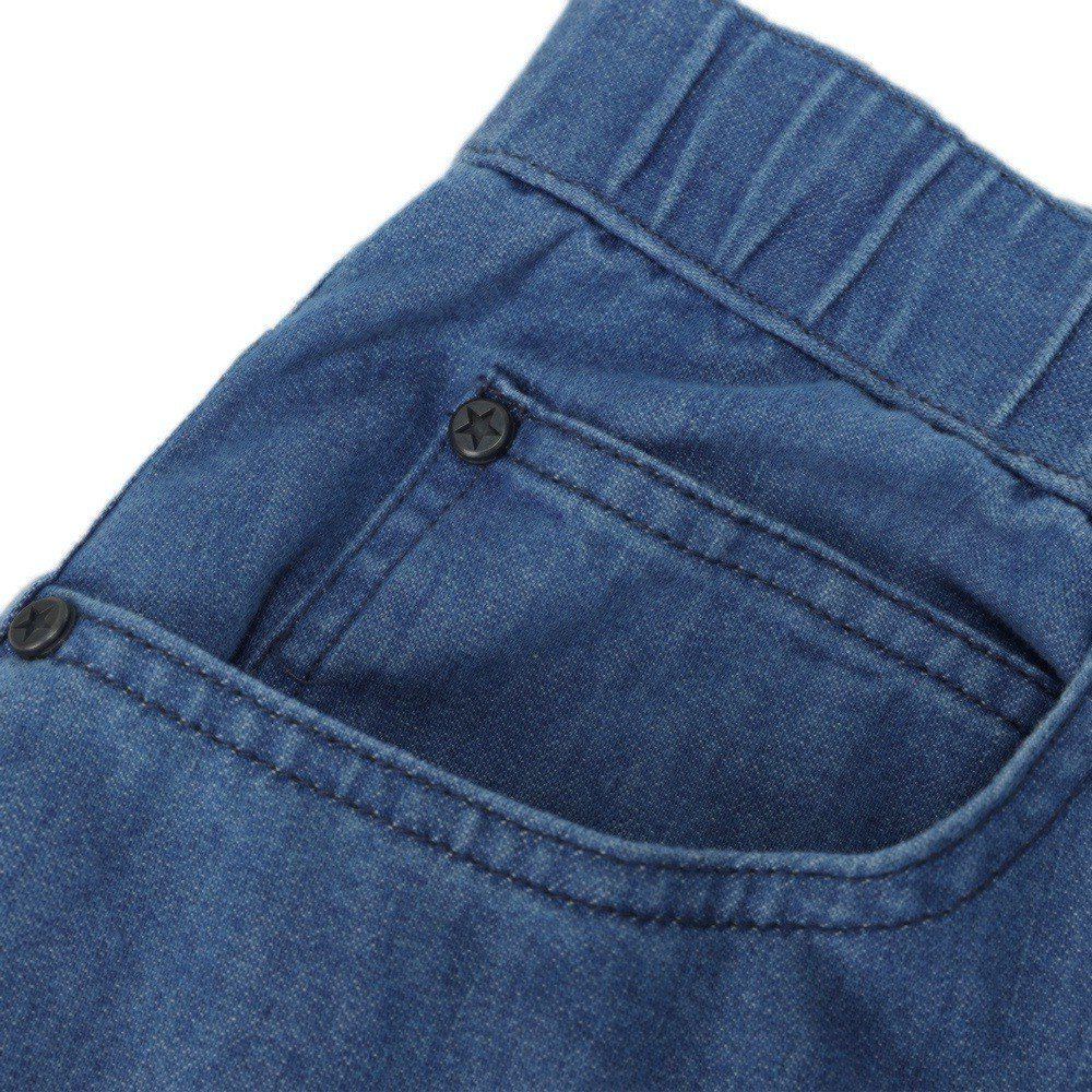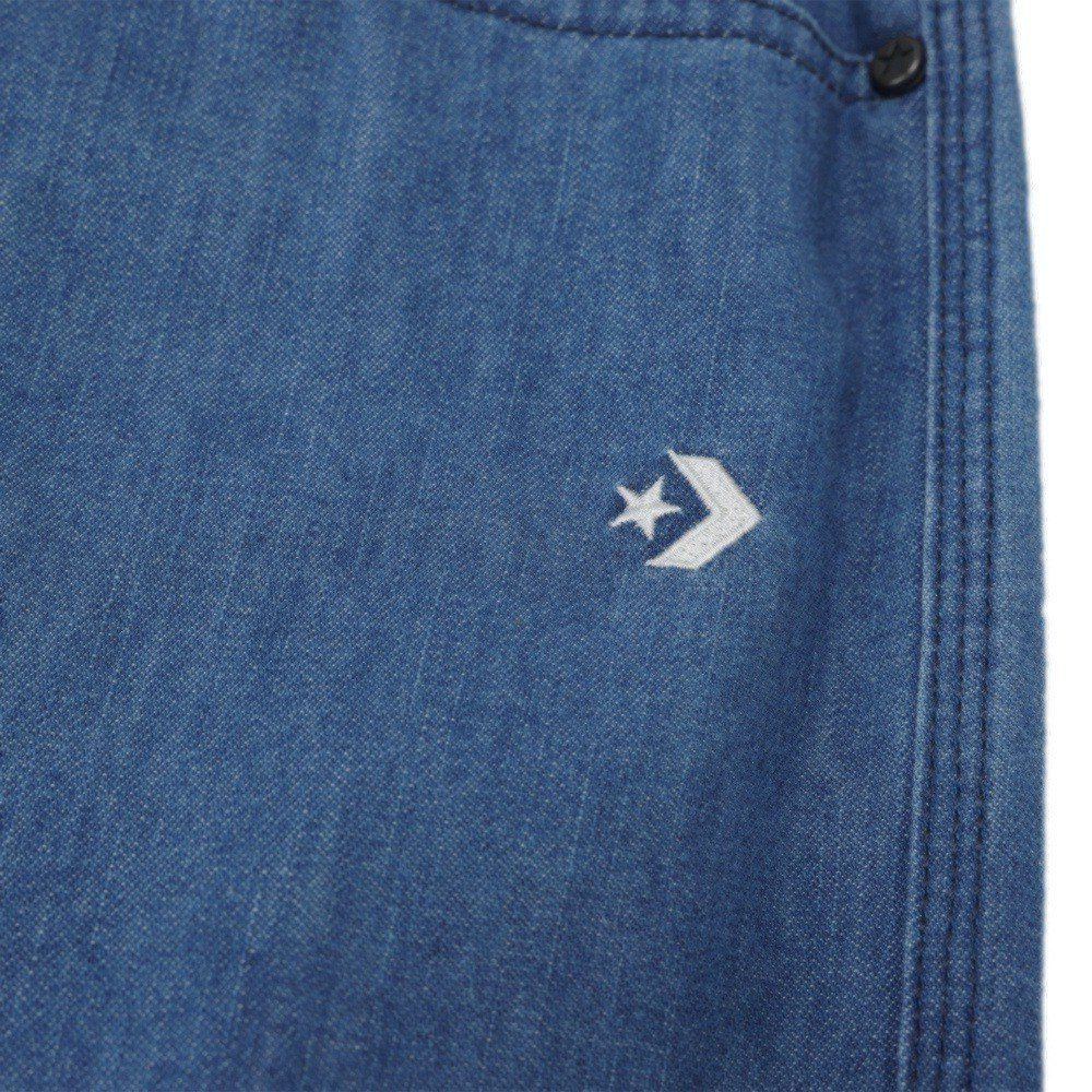 - 採用涼爽穿著感的天絲牛仔布材質淺色水洗色調,呈現寬鬆版型舒適的寬鬆剪裁,腰部內側設有抽繩可調整版型增添亮點的星星鉚釘細節與後口袋堅固的雙縫線收邊正面有感性的刺繡標誌圖案