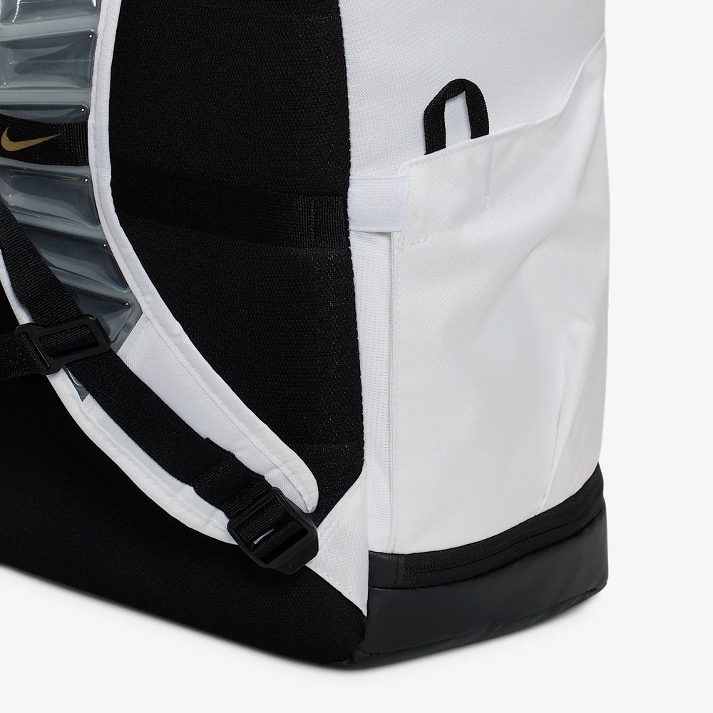 - Nike Varsity Elite 背包可容納打籃球所需裝備。 大型主隔間空間寬敞。 正面外袋方便快速取放小型物品,而底部口袋則可分開放置沾汗衣物和髒鞋。設有行李套帶,方便在前往客場比賽時將背包固定於行李上。優點肩帶融入 Air Max 技術,更加舒適。頂部拉鍊口袋配有柔軟裡布,可保護電子產品和重要物品。背面拉鏈隔層可容納大部分手提電腦。產品詳情12 x 20 x 9 吋可擴充側袋設計物料:織布不可機洗