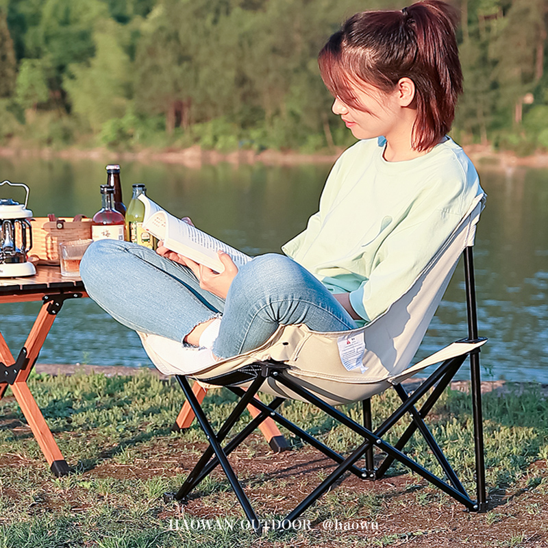 品名:【好玩旅物】牛津布戶外露營折疊月亮椅露營椅(附收納袋)