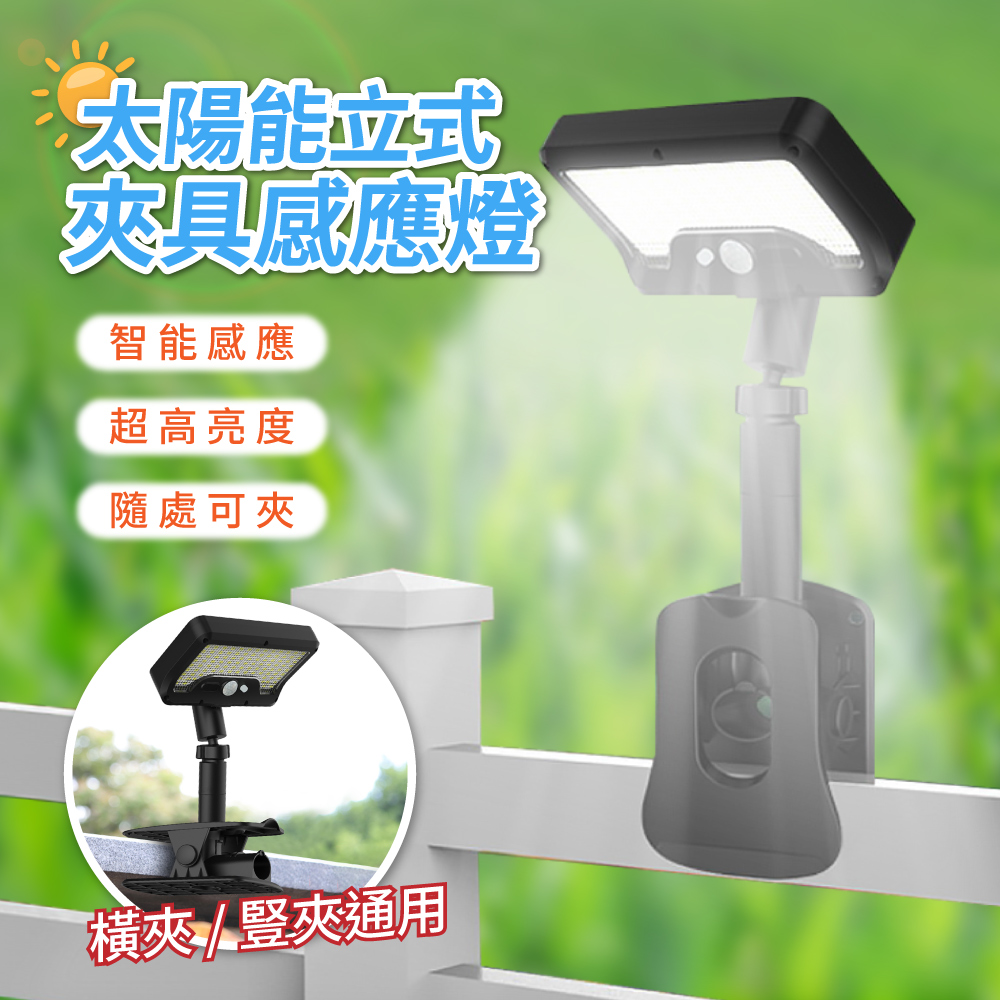 太陽能 立式夾具感應燈 智能感應 人來即亮 光控 IP65 防水 360度旋轉 人體感應 LED 高亮度 戶外照明