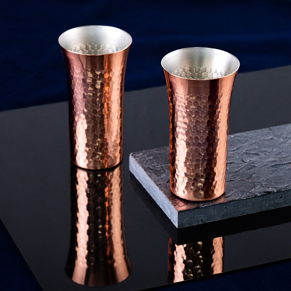 【ASAHI 食樂工房】日本製 純銅槌目高杯 啤酒杯S 150ml 2入禮盒組