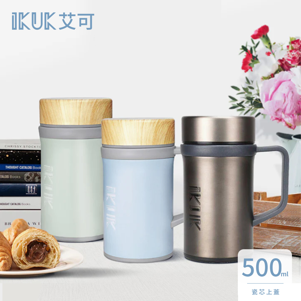 IKUK艾可 真陶瓷保溫杯-瓷芯上蓋手把保溫杯500ml