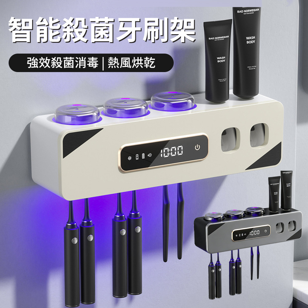Andy 觸控紫外殺菌牙刷架 牙刷烘乾機 壁掛牙刷架 自動擠牙膏器 電動牙刷置物架 牙刷消毒架 熱風烘乾