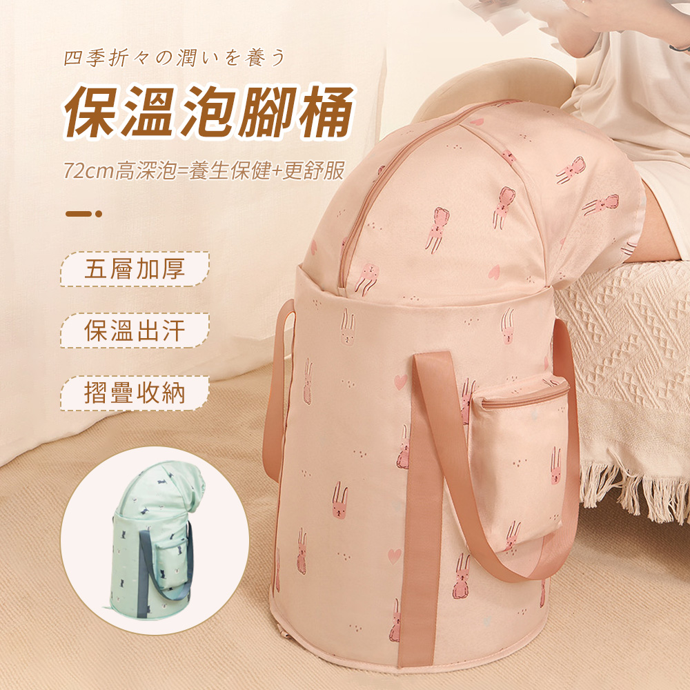 SUNORO 清倉福利 折疊加高過膝泡腳桶 帶蓋保溫薰蒸泡腳袋 足浴桶 72CM款/附收納袋