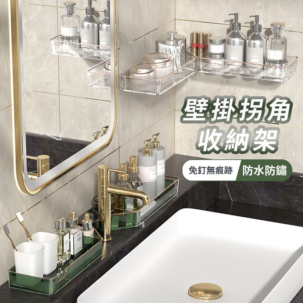 Homeco 轉角收納角落架 衛生間衛浴收納架 桌面整理架 壁掛免打孔化妝品收納盒(三角架/置物架/牙刷架)