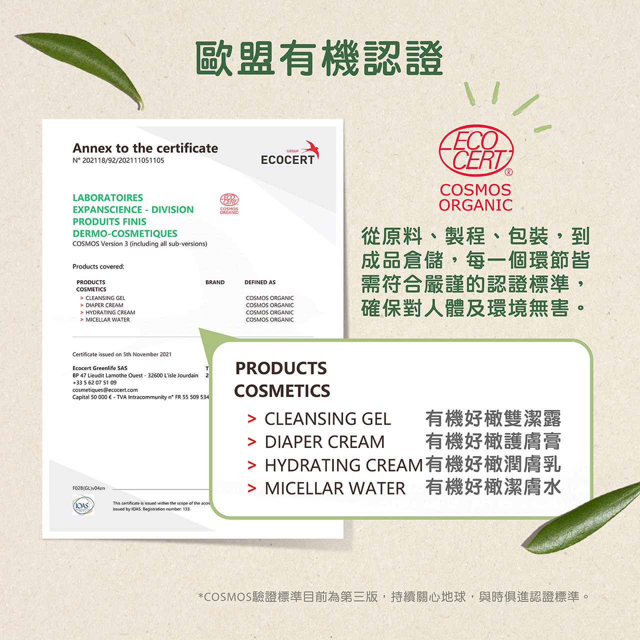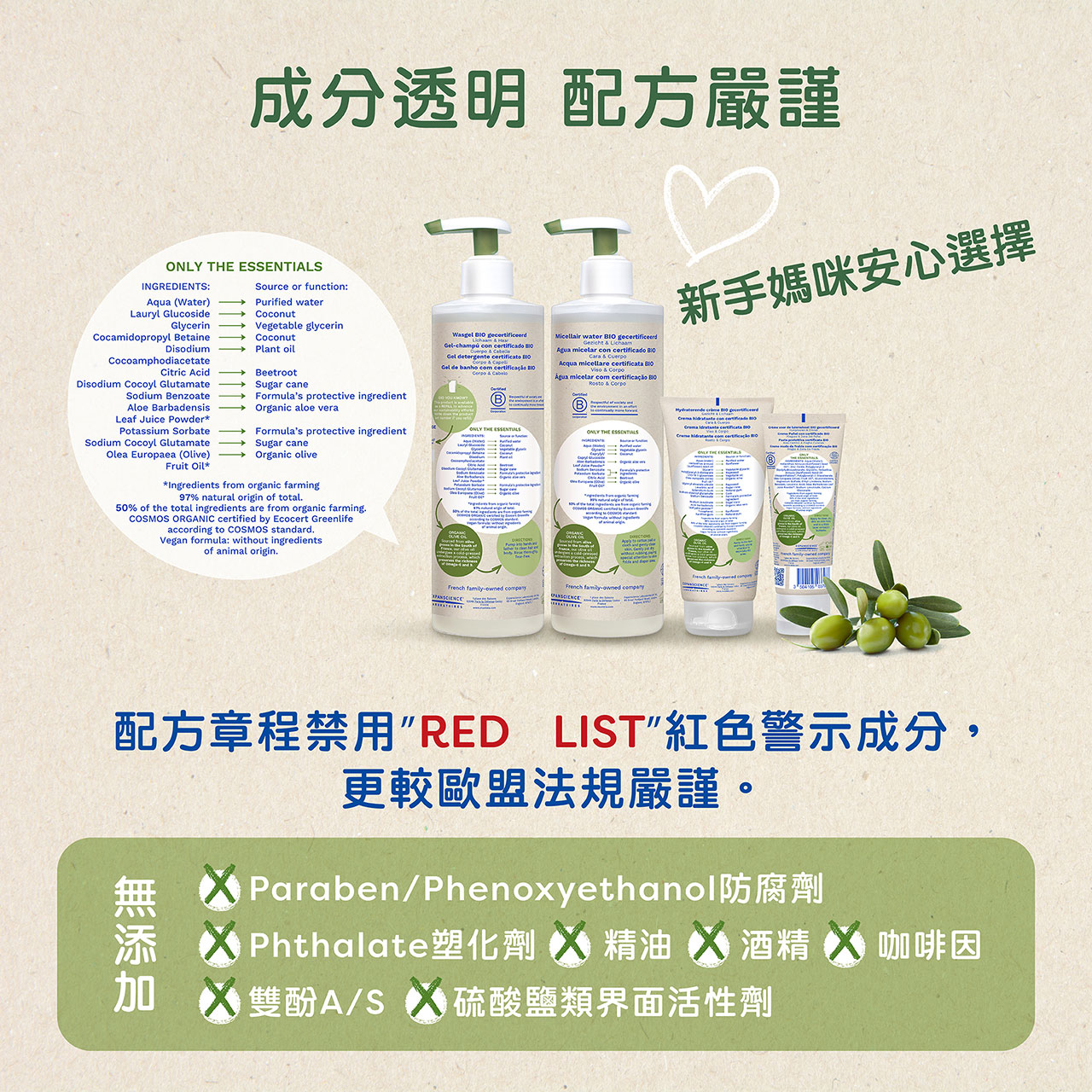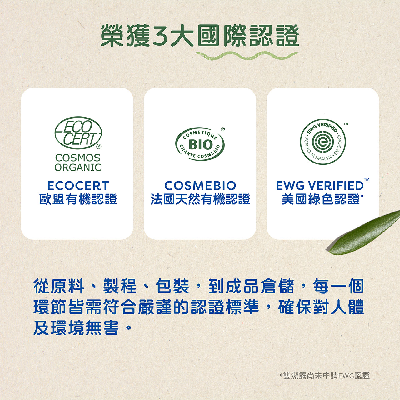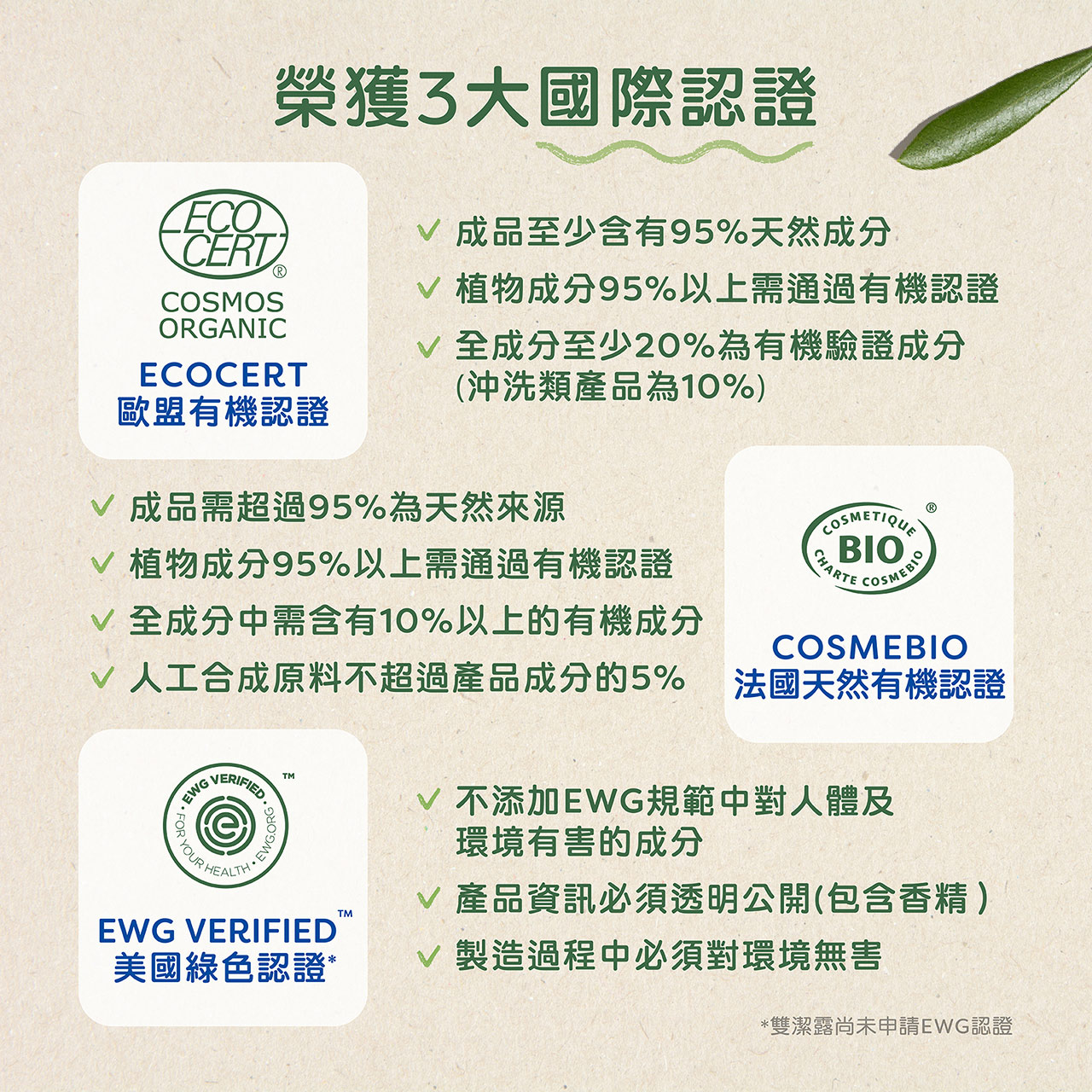- 多重有機認證:榮獲法國BIO天然有機認證、歐盟ECOCERT有機認證、EWG Verified綠色認證