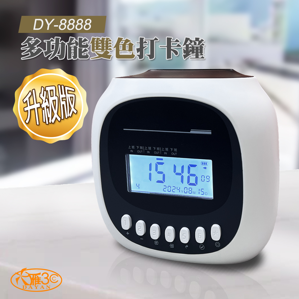 DAYAN 大雁 DY-8888 多功能雙色打卡鐘6欄位打印 雙色打印 自動位移自動吸卡提醒音樂